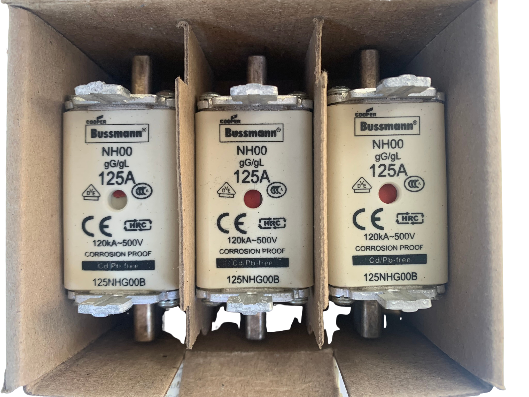 Conjunto de 3 peças de Fusivel NH00 125A 500V gL/gG - 125NHG00B Bussmann