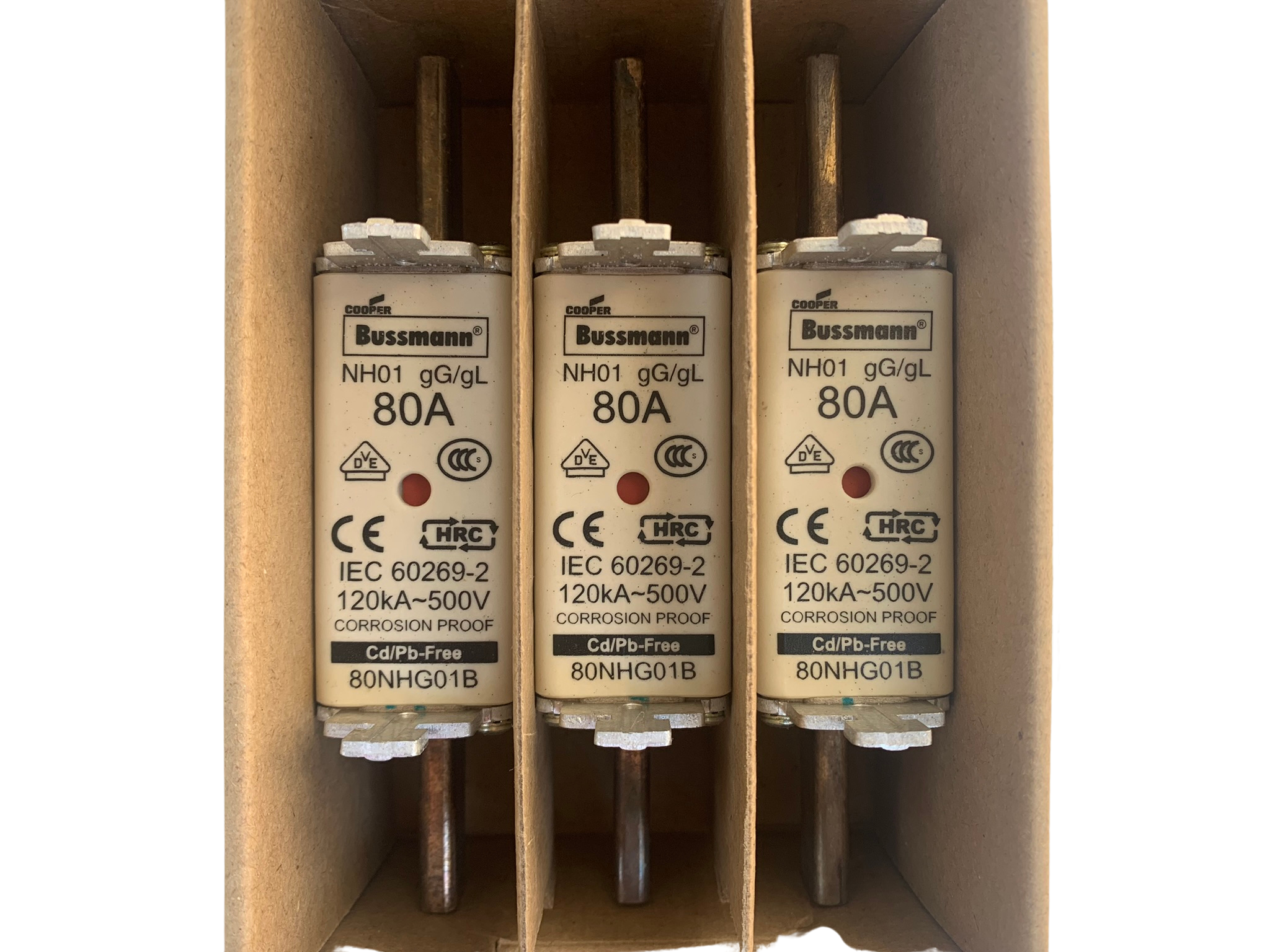 Conjunto de 3 peças de Fusivel NH1 80A 500V gL/gG - 80NHG01B Bussmann