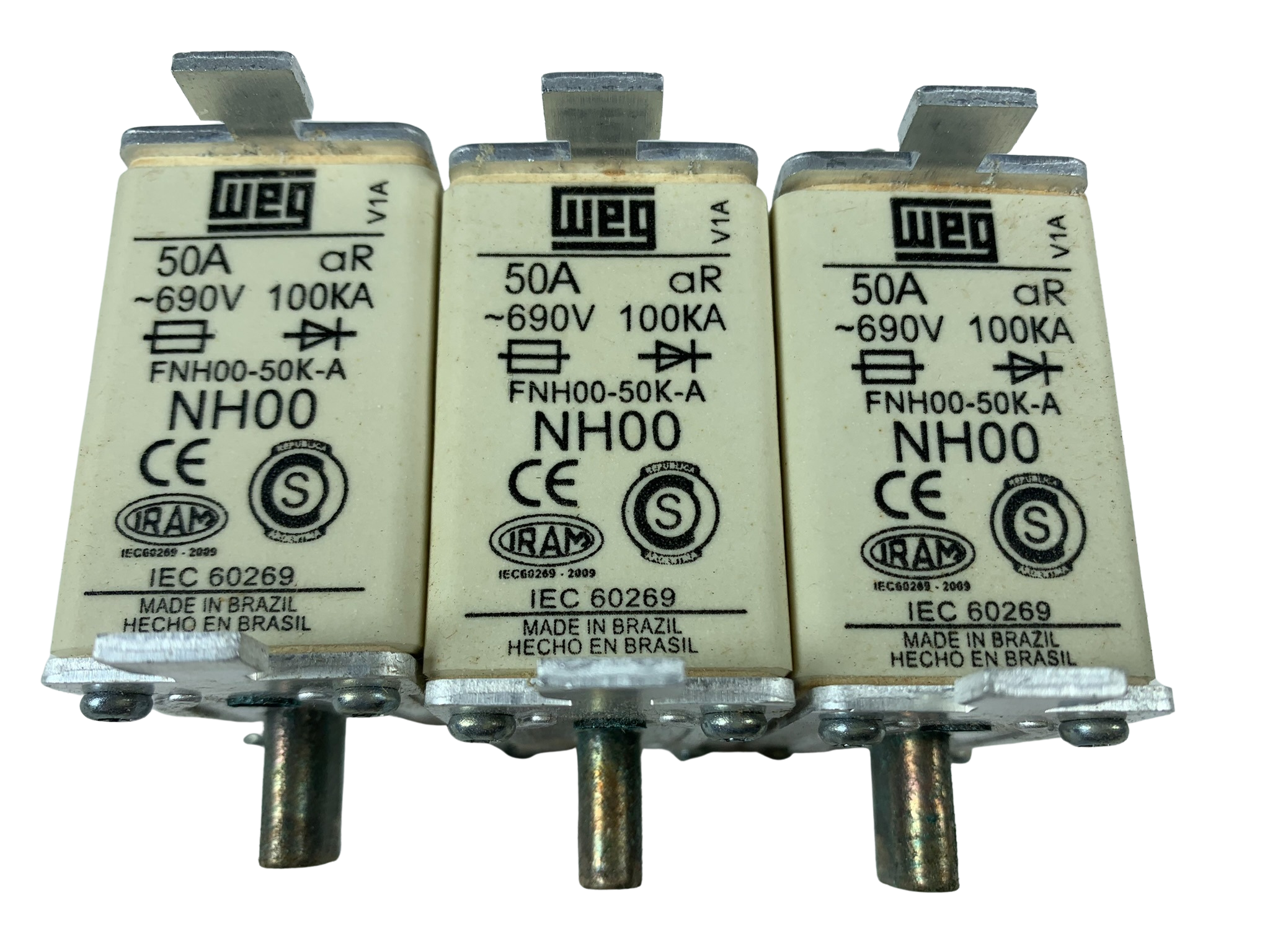 3 pçs fusíveis NH00 aR 50A 100kA FNH00-50K-A 10701718 Weg.