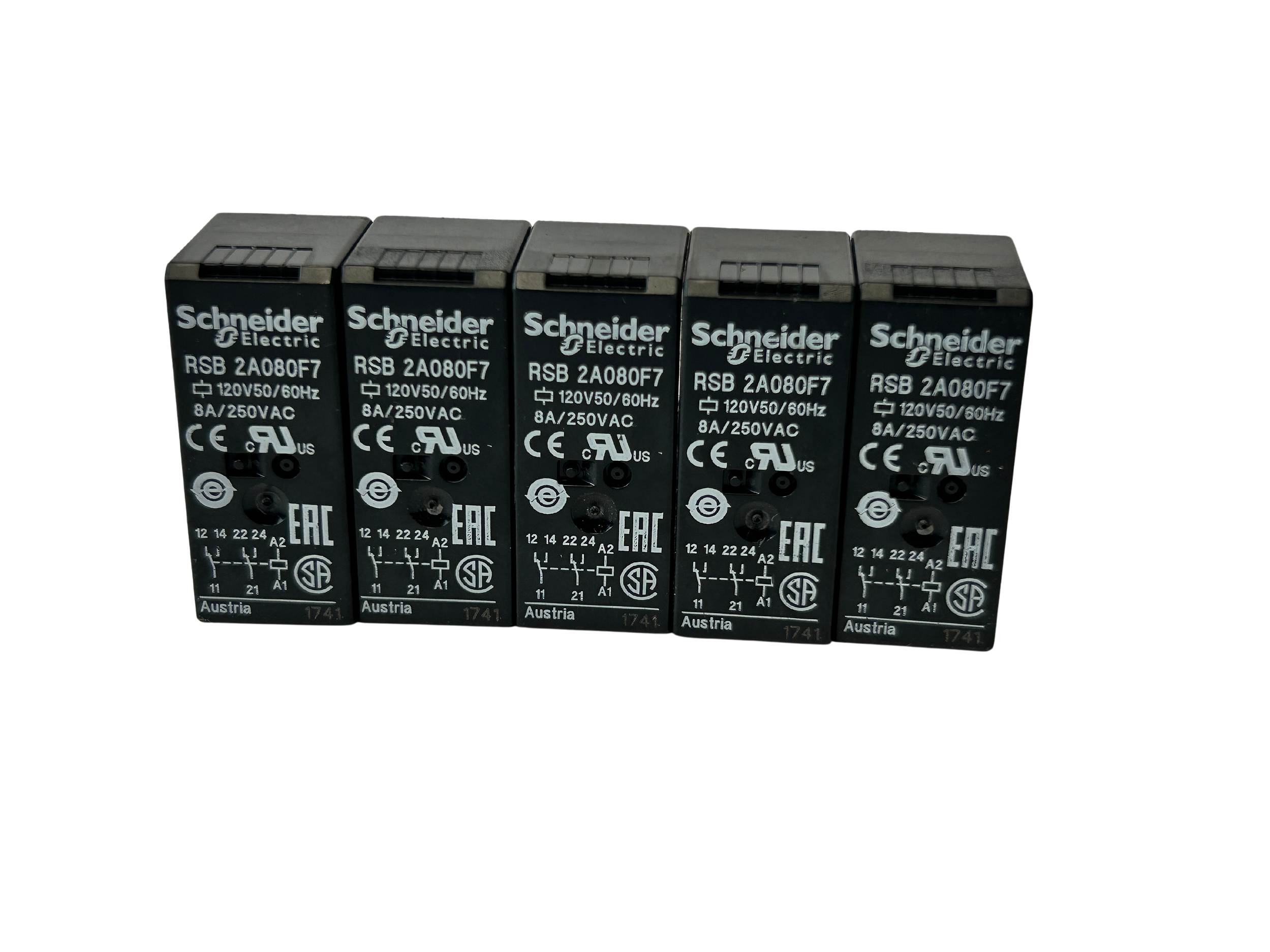 Kit 5 peças de Relé de interface 8A 2NAF 120VCA RSB2A080F7 Schneider Electric