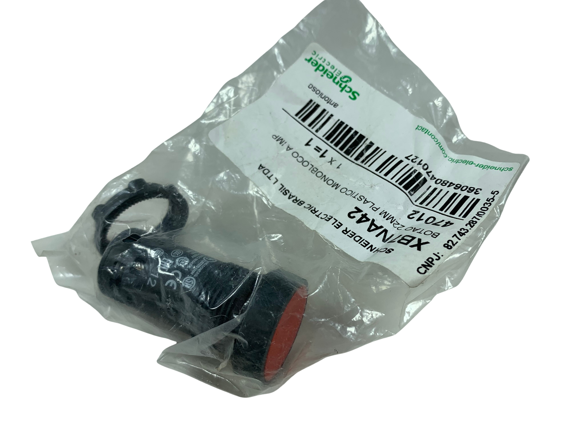 Conjunto de 6 pçs Botao monobloco 22mm plastico retorno por mola vermelho NF XB7NA42 Schneider Electric