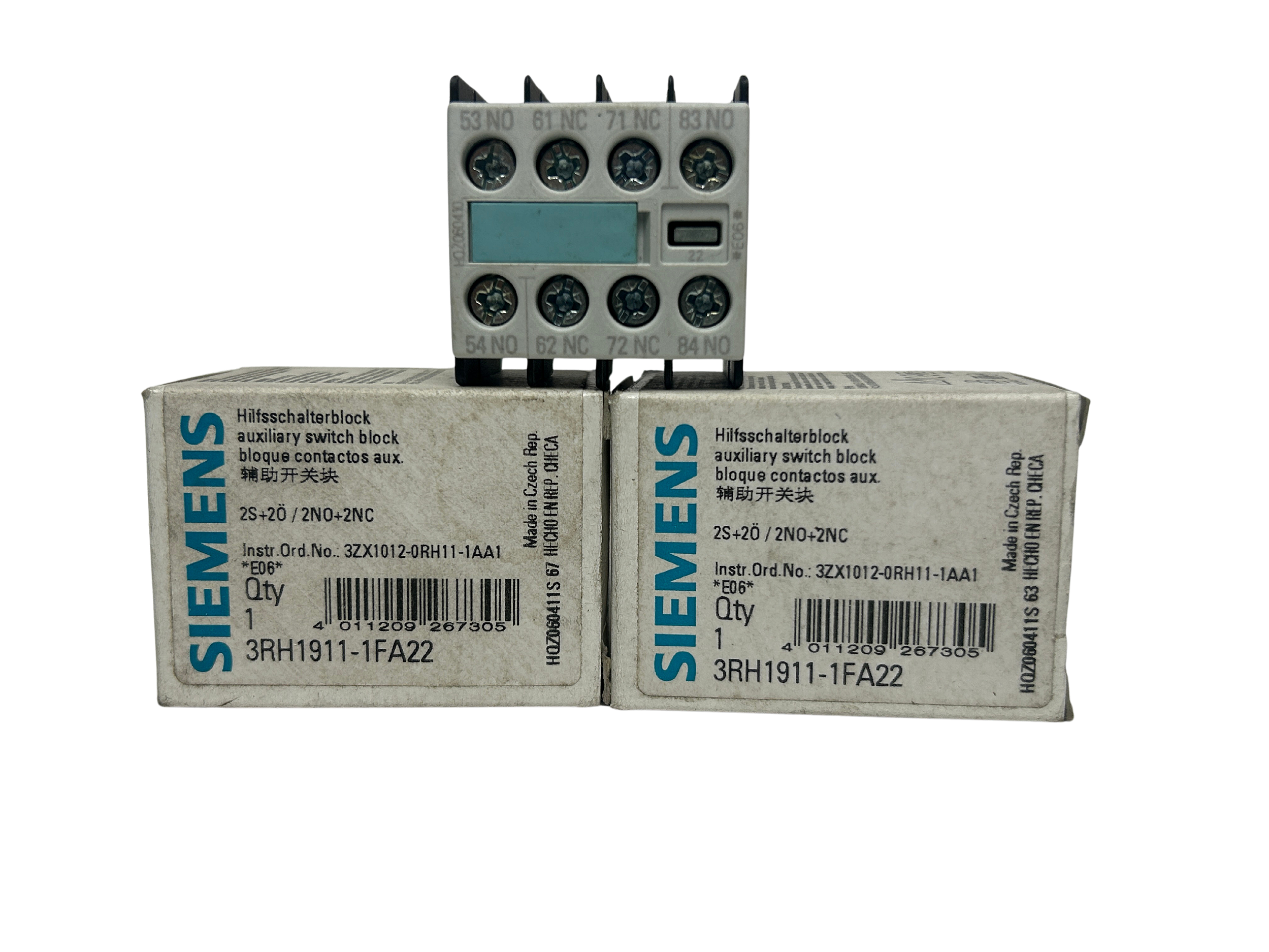 Kit 3 peças Bloco de interruptores auxiliares, 22 2 NA + 2 NF EN 50005, tamanho do terminal de parafuso S00. Para contatores auxiliares e de motor!!! 3RH1911-1FA22 Siemens