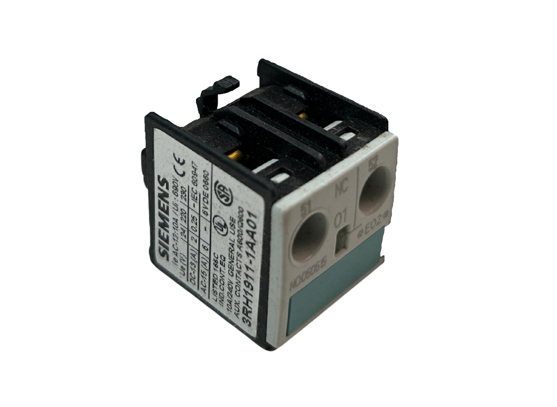 Bloco de interruptores auxiliares, 1 conexão NF EN 50005 pela parte superior, terminal de parafuso tamanho S00. Para contatores auxiliares e de motor. 3RH1911-1AA01 Siemens