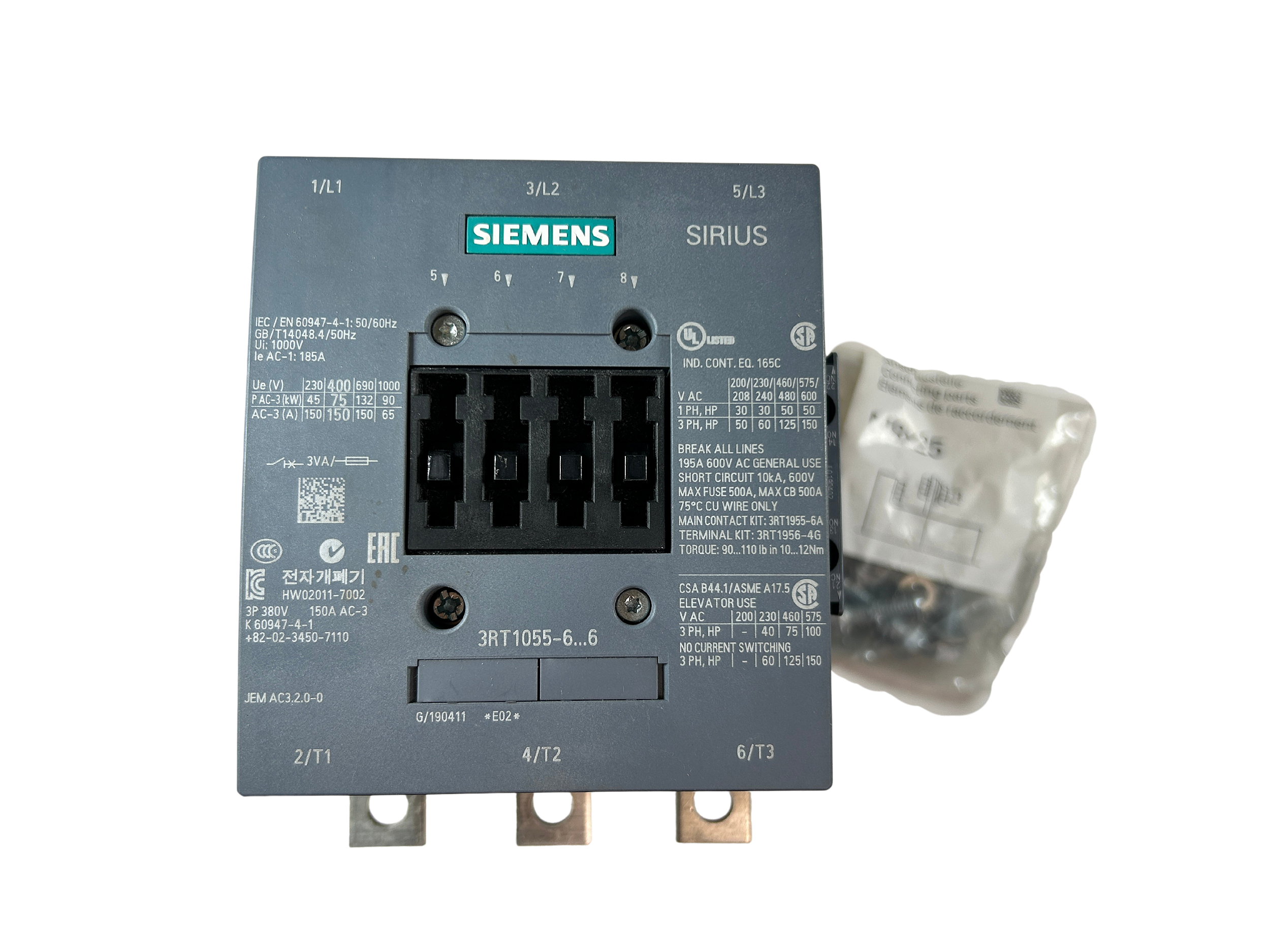 Contator tripolar 150A 75kW 200-277VCA/VCC 2NA+2NF 3RT1055-6NP36 Siemens