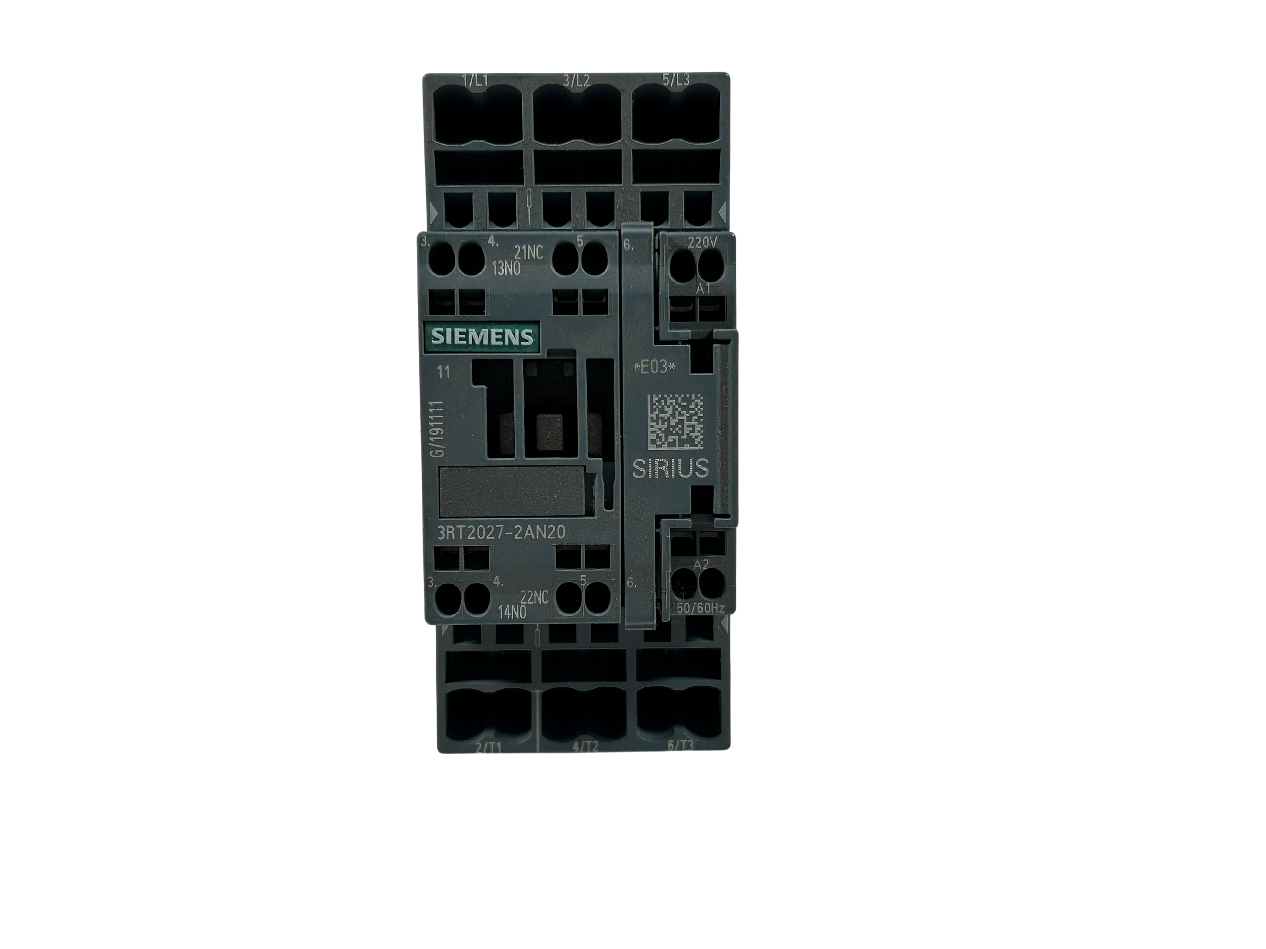 Contator de potência AC-3e/AC-3, 32 A, 15 kW / 400 V, 3 polos, 220 V CA, 50/60 Hz, contatos auxiliares: 1 NA + 1 NF, terminal com mola, tamanho: S0