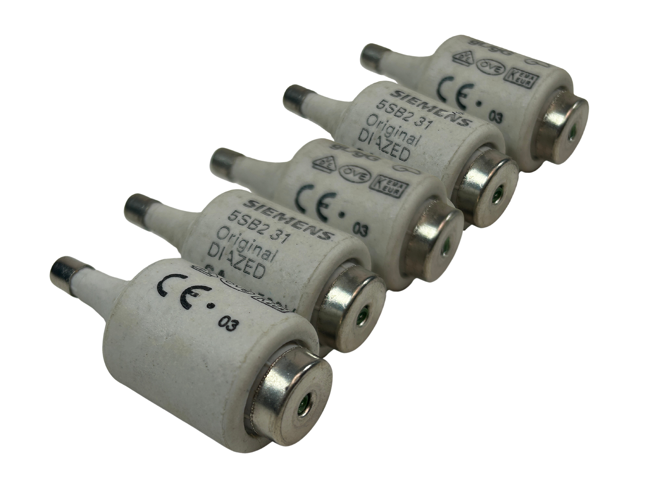 Kit 5 peças Fusível DIAZED 500 V para proteção de cabos e linhas gG, tamanho DII, E27, 6A Siemens