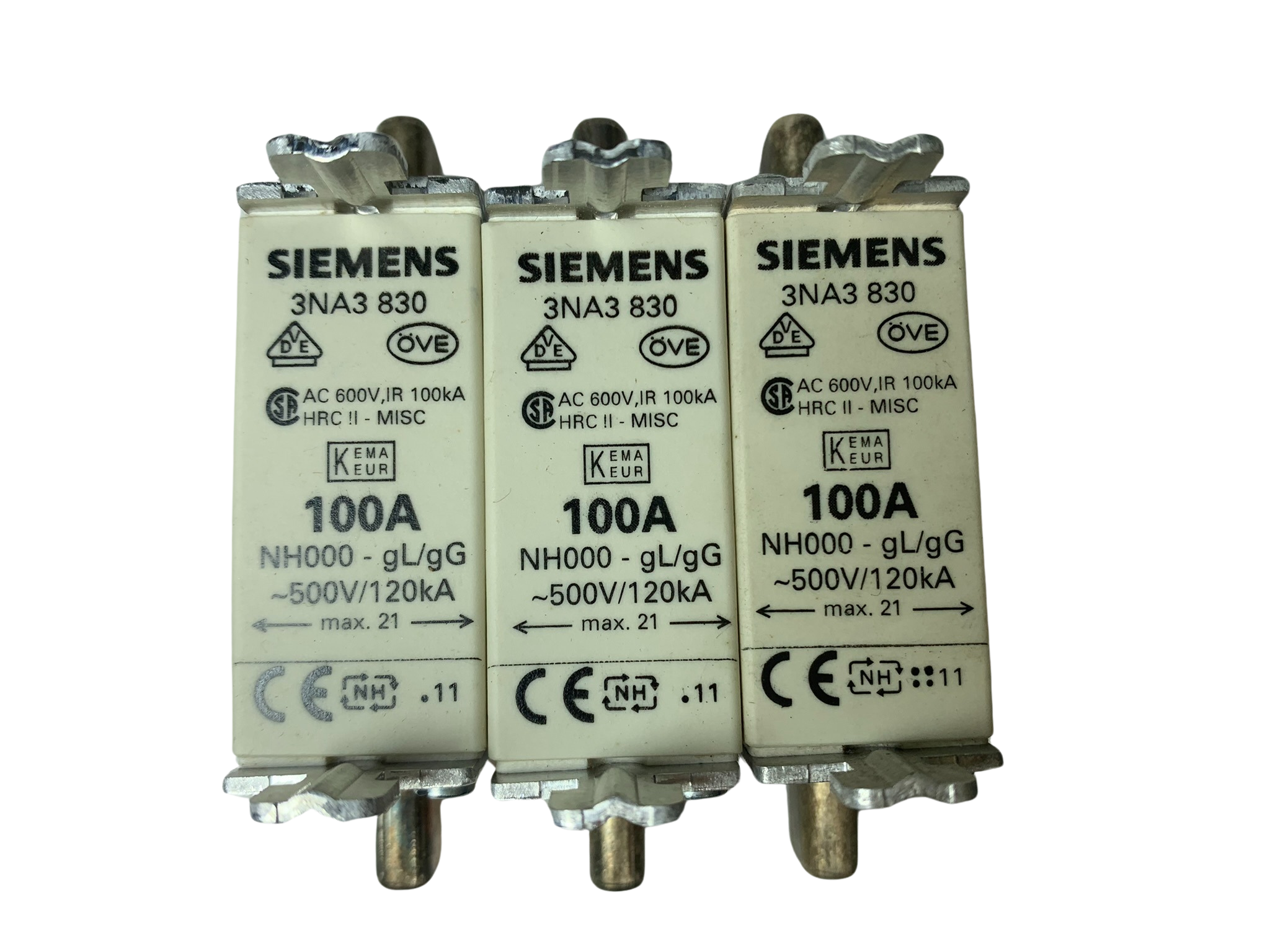 3 peças Fusivel NH000 100A gG 3NA3830 Siemens.
