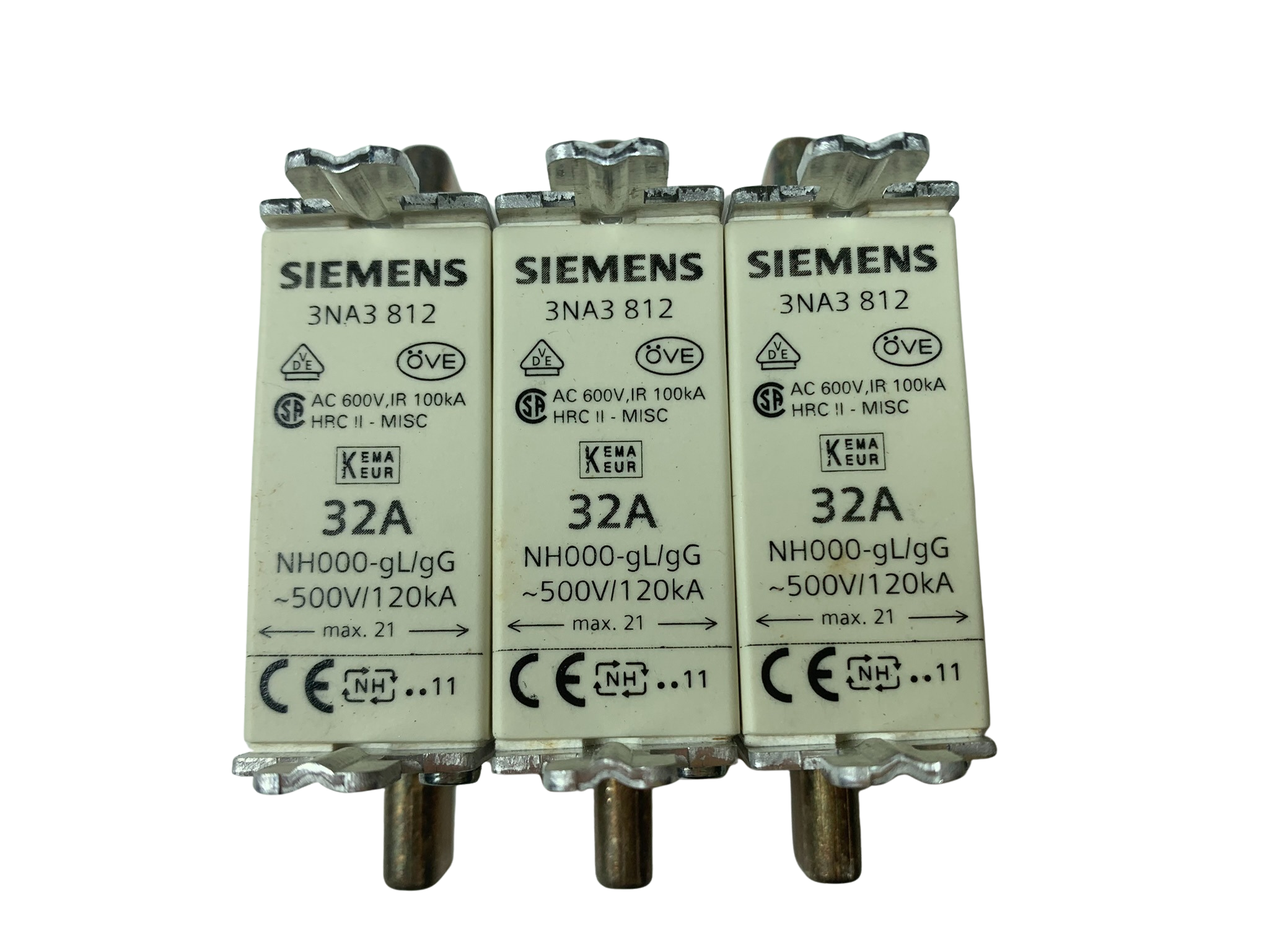 Conjunto 3 peças de Fusivel NH000 32A gG 3NA3812 Siemens