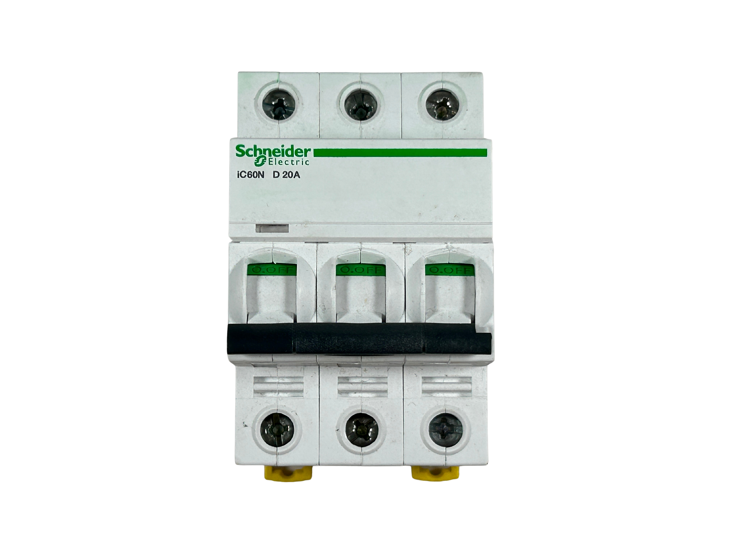 Mini Disjuntor Acti9 IC60N 3P, 20A, Curva D, 10kA em 380/415VCA A9F75320 Schneider.