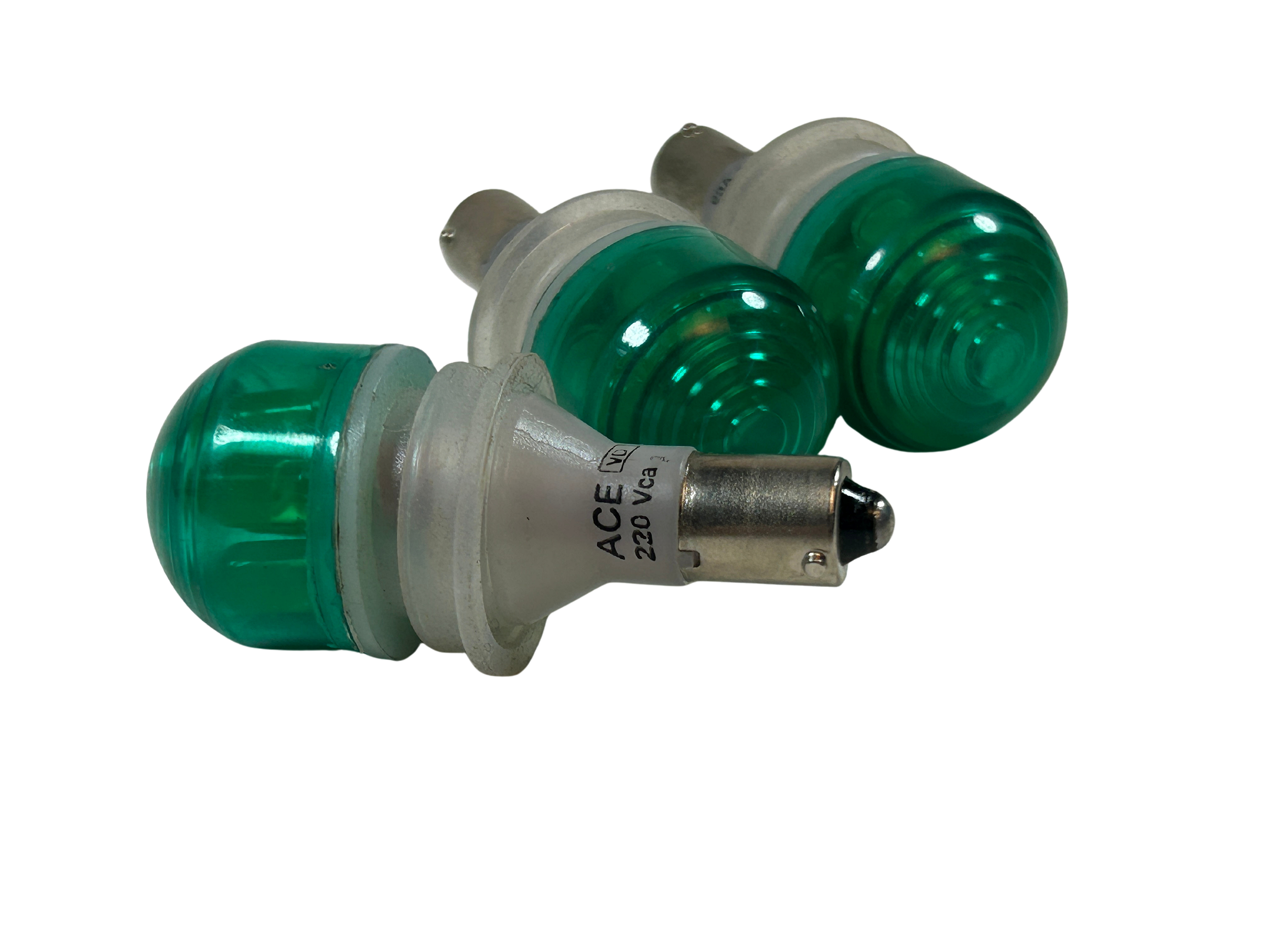 Kit 3 peças lâmpada Sinalizadora 7 Leds verde Encapsulada 220Vca/Cc Ba9S S7LS/15 Ace